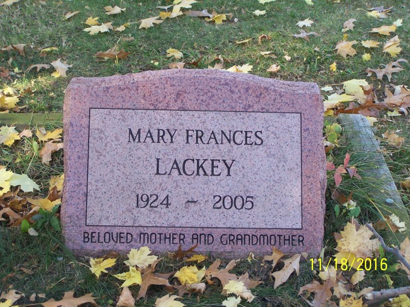 Lackey, Mary F. front